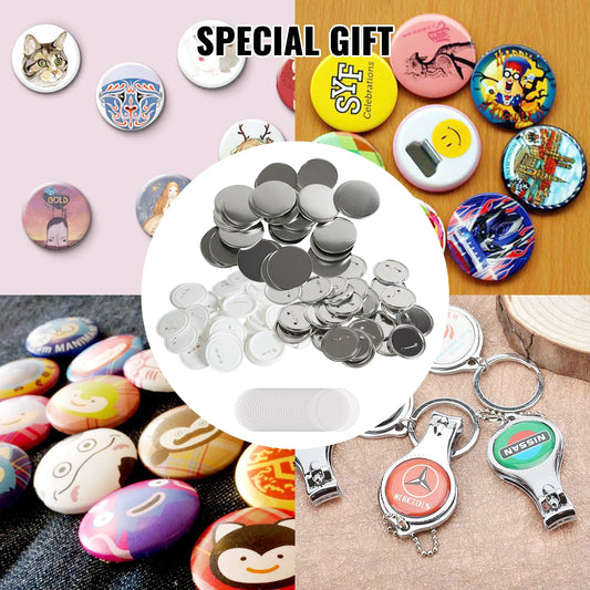 VEVOR 25/32/58/75 mm příslušenství k odznaku tlačítka pro stroj na výrobu knoflíků 200/500 Sady kovových a plastových odznaků kolíků