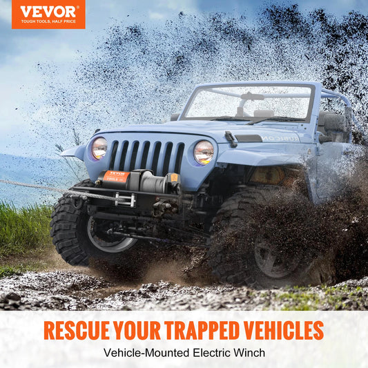 Elektrický naviják VEVOR 2000lbs Ocelový lanový naviják ATV naviják s kabelovým dálkovým ovládáním a 4cestným vodítkem pro tažení terénního SUV Jeep