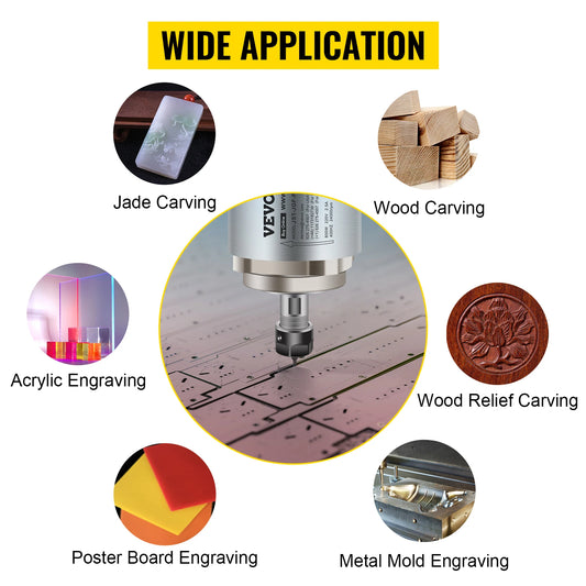 Vzduchem chlazený vřetenový motor VEVOR 0,8 kW Vysokorychlostní rotace 12000-24000 PRM 400Hz pro gravírování, frézování a broušení Použití CNC routeru