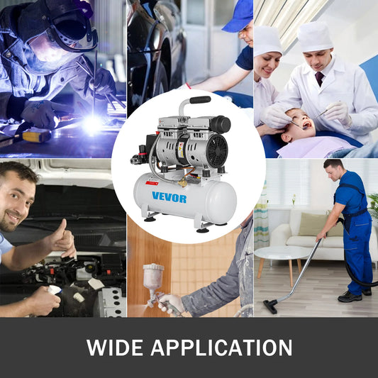 Tichý vzduchový kompresor VEVOR 9L s motorem z čisté mědi 550W Bezolejové vzduchové čerpadlo pro domácí opravy kompresoru na huštění pneumatik