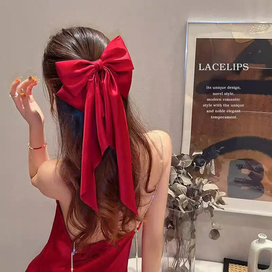 Nová mašlička v korejském stylu Sponka do vlasů Jednoduchá a velkorysá saténová pružinová spona Pevná spona do vlasů Retro