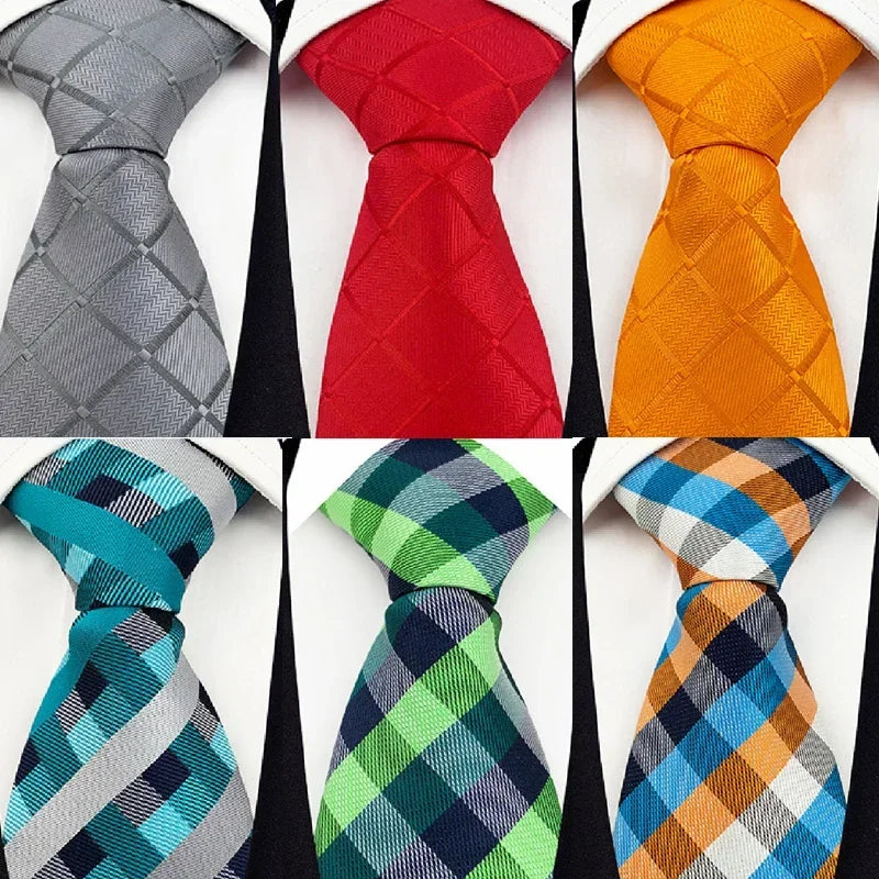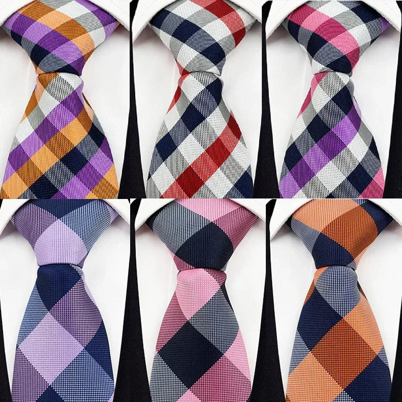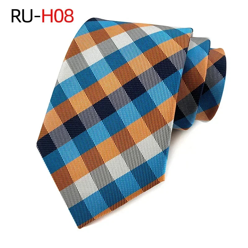 8cm žakárová tkaná kravata pro muže Klasické kostkované kravaty na svatební oblek Gravatas Para Homens Příslušenství