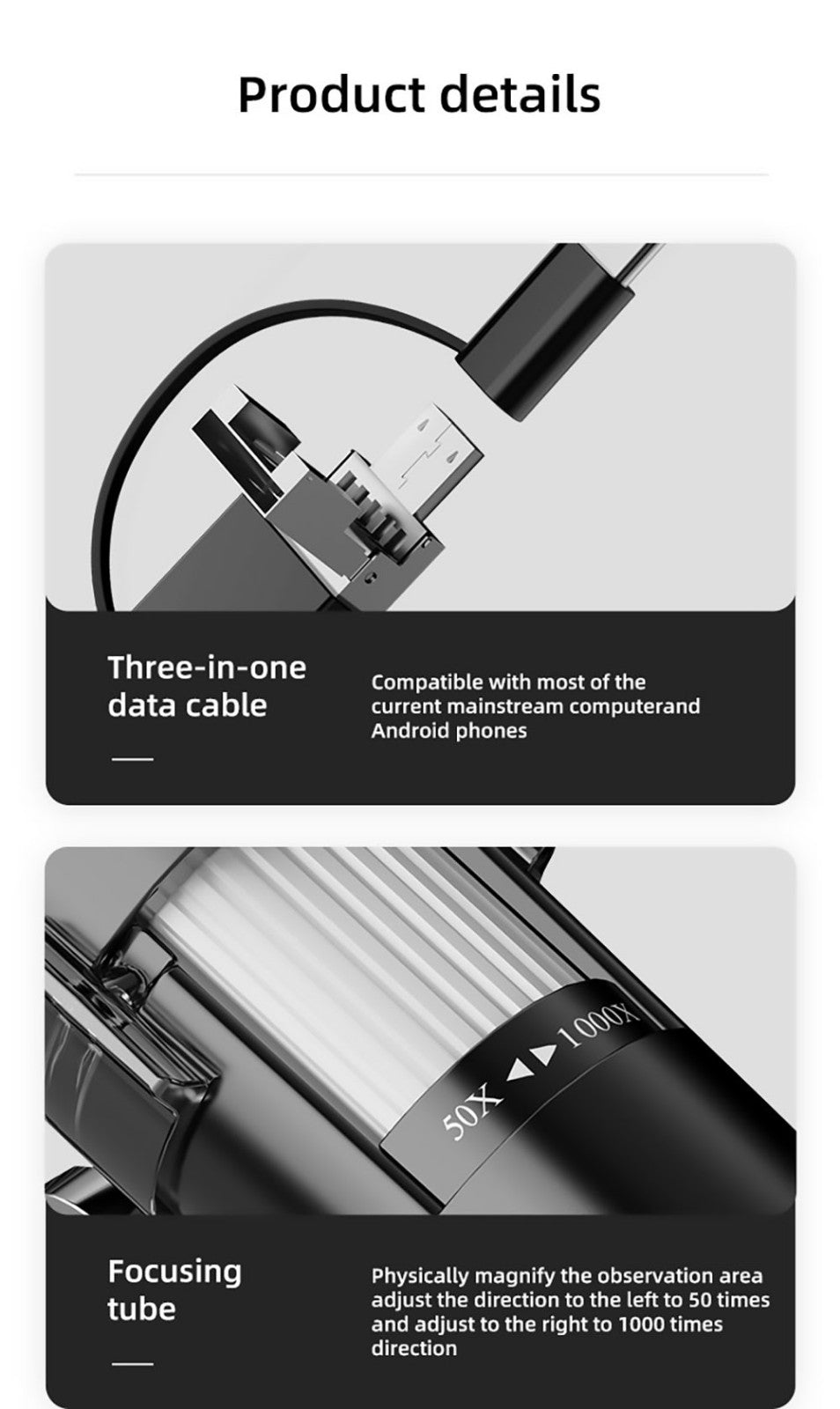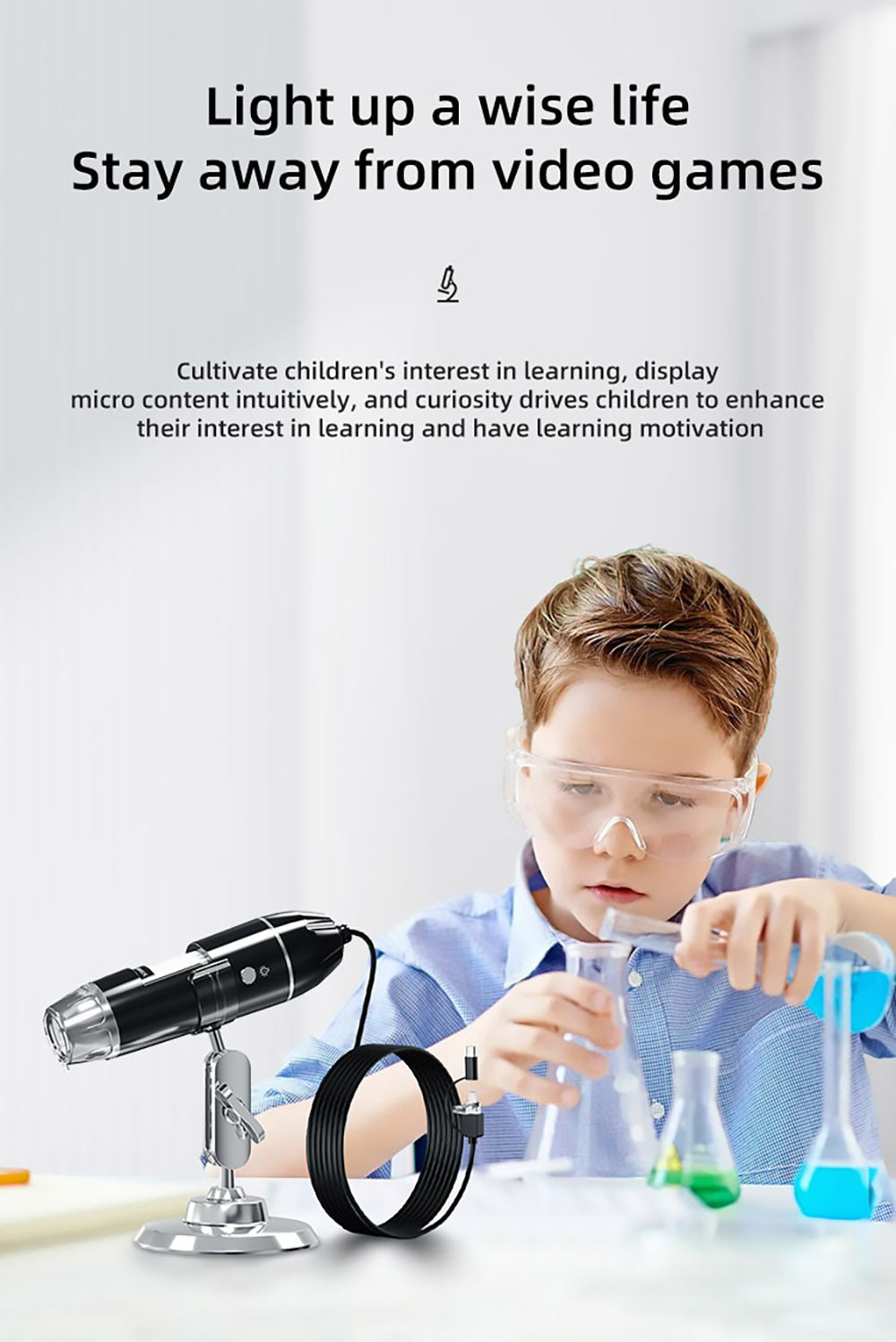 1. Elektronový mikroskop ANESOK 321 je základní mikroskop s rozlišením 300 000 pixelů, zvětšením až 1000x a rozlišením 640*480, které vám pomůže prozkoumat přírodu a mikroskopické objekty, jako jsou sklíčka, šperky, hmyz a další.