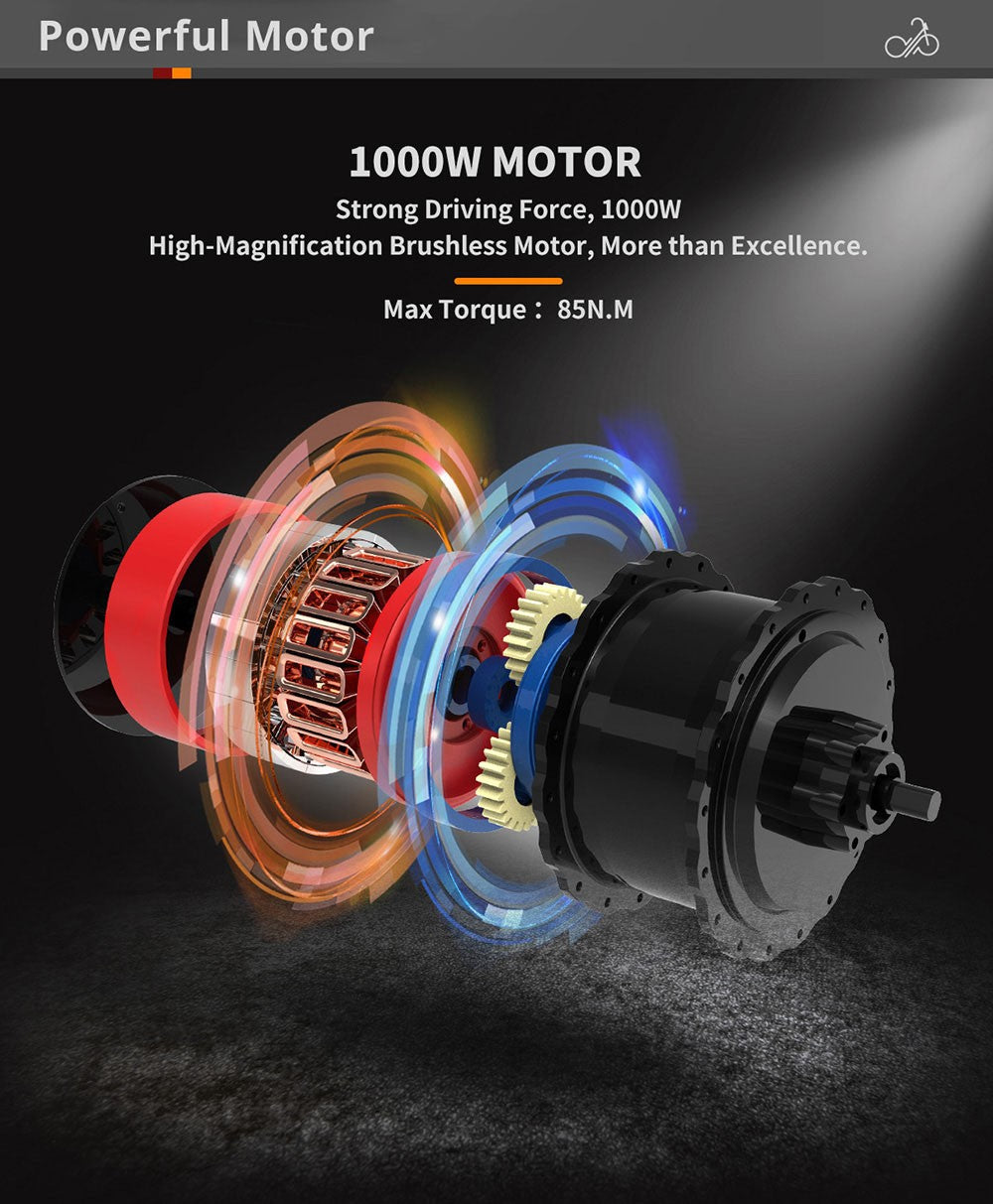Bezkartáčový motor s vysokým zesílením nabízí maximální točivý moment 85 Nm a maximální rychlost je až 48 km/h.