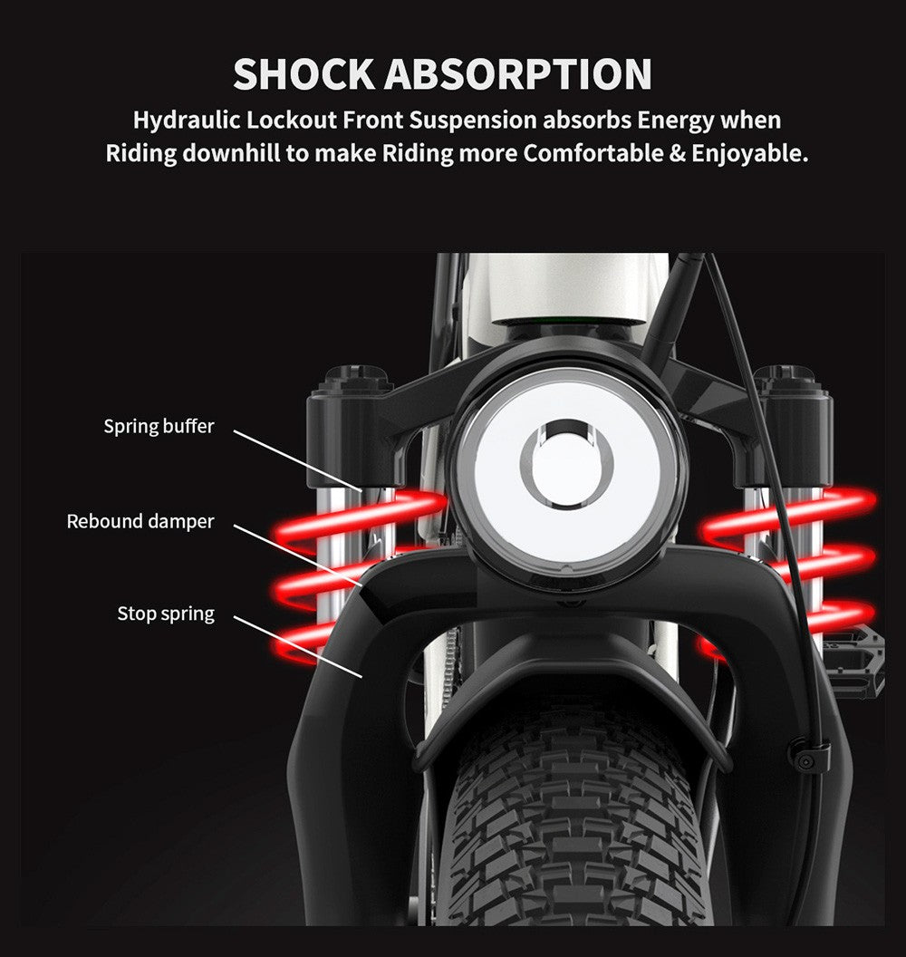 Hydraulicky uzamykatelné přední odpružení absorbuje energii při jízdě z kopce, takže jízda je pohodlnější a příjemnější.