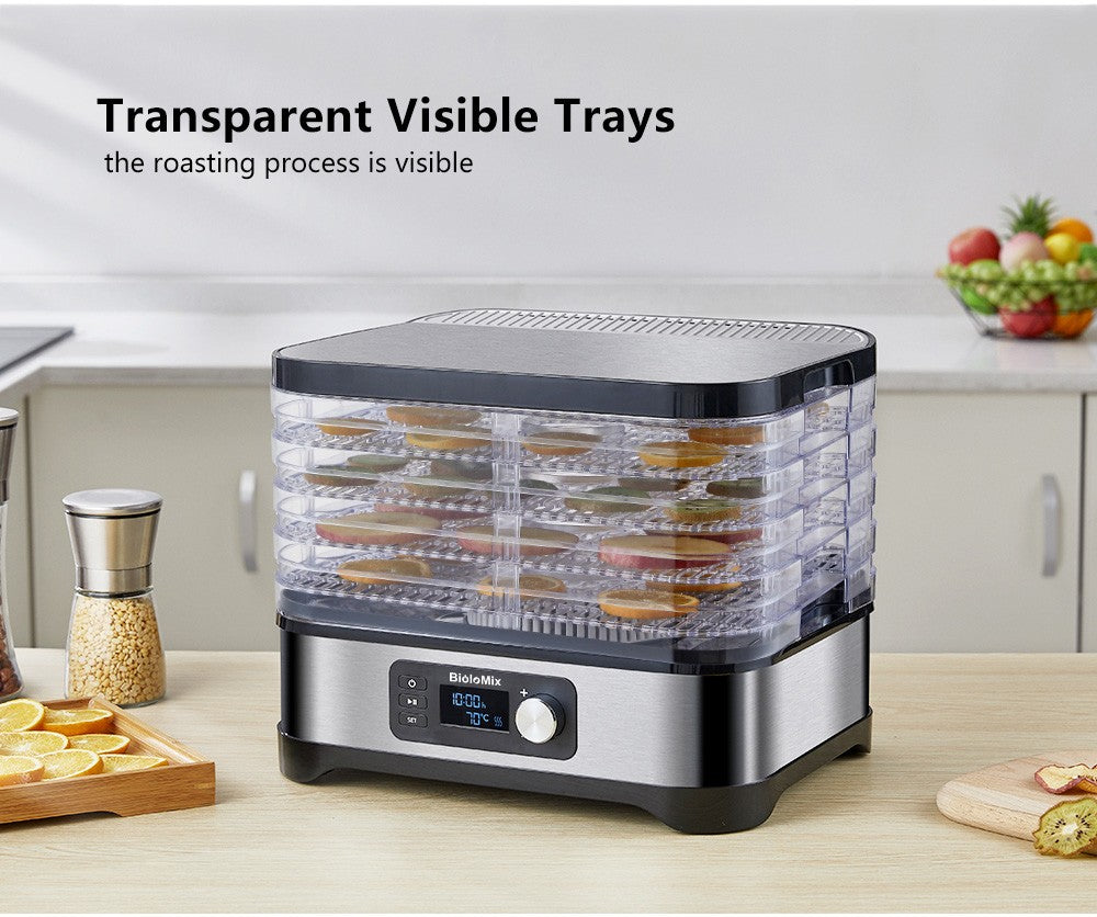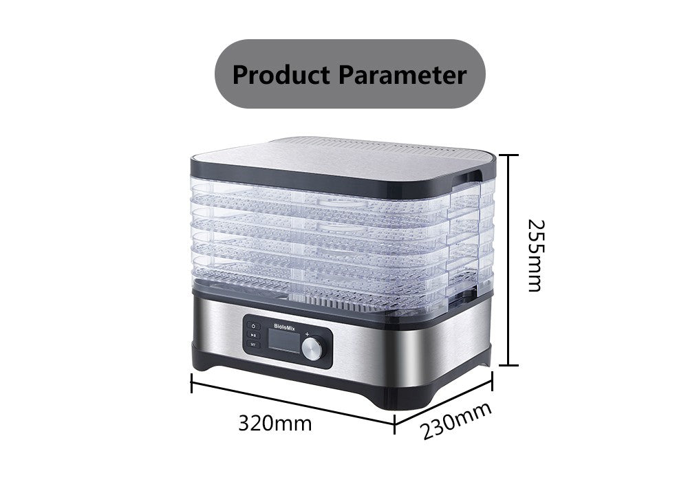 Tato sušička potravin je vybavena 5 velkokapacitními sušicími rošty, což je dostatečné pro uložení většiny potravin a dosažení rovnoměrného sušení. Poskytuje maximální pohodlí pro třídění různých potravin a zvyšuje produktivitu.