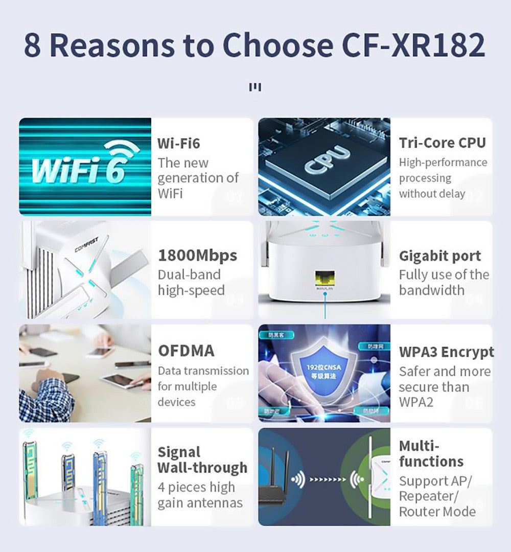 1. Dvoupásmový gigabitový bezdrátový zesilovač signálu 5G