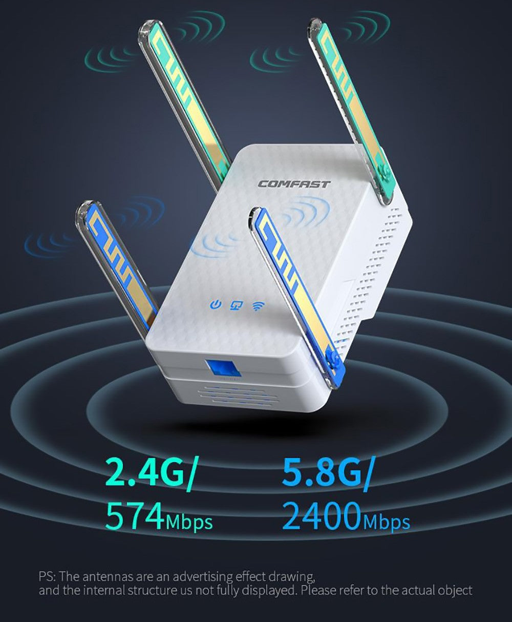 | Transmission Rate: 2.4GHz: 574Mbps, 5.8GHz: 2400Mbps | |