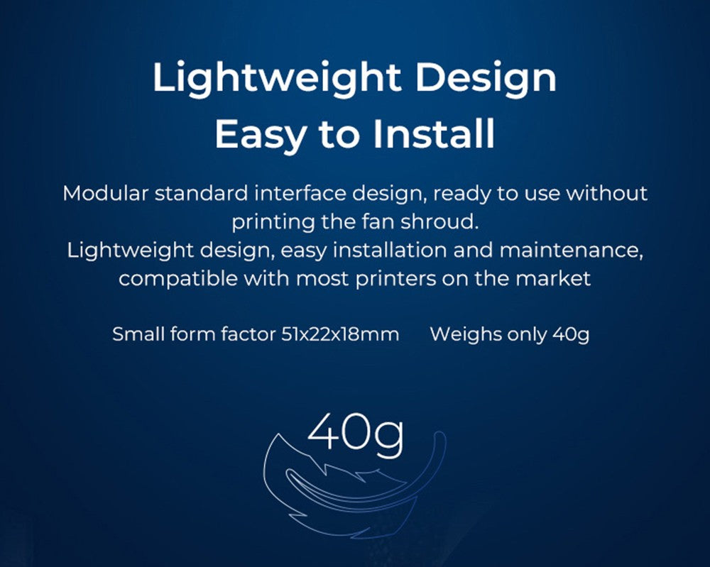 Modulární standardní rozhraní umožňuje okamžité použití bez nutnosti tisku krytu ventilátoru. Lehká konstrukce pro snadnou instalaci a údržbu.