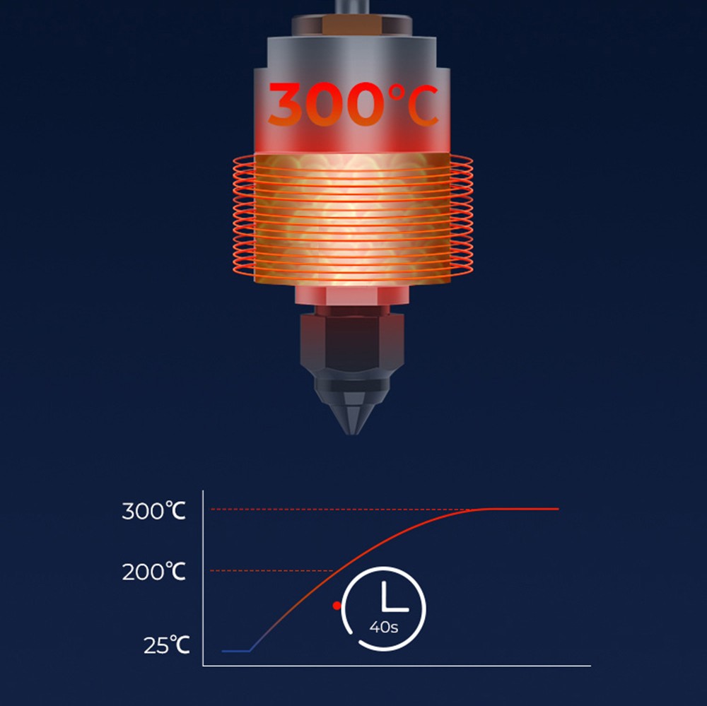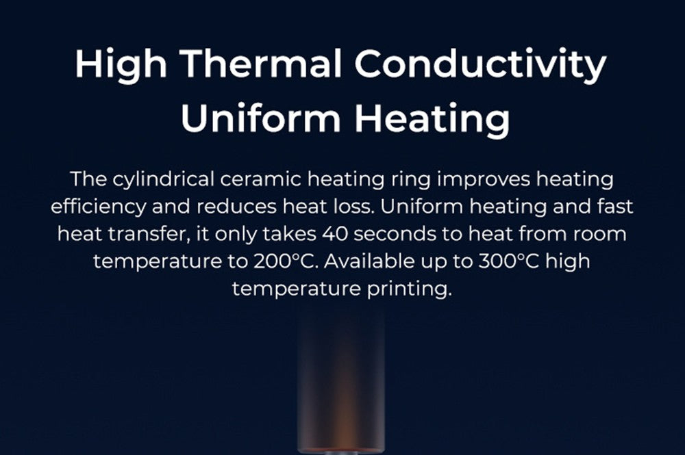 Válcový keramický topný prstenec zlepšuje účinnost ohřevu a snižuje tepelné ztráty. Díky rovnoměrnému ohřevu a rychlému přenosu tepla trvá ohřev z pokojové teploty na 200 °C pouhých 40 sekund.
