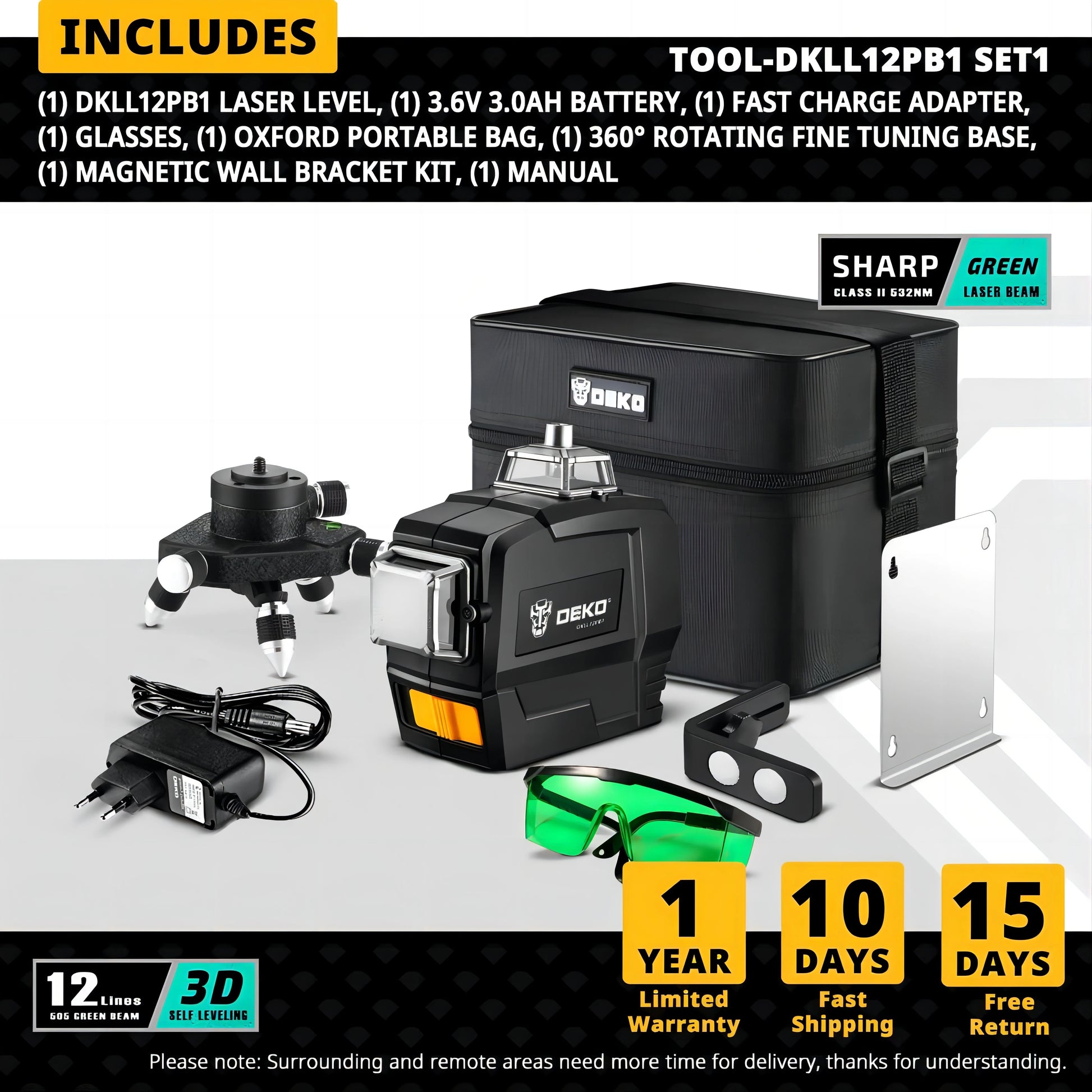 DEKO 16/12 Lines 4D Samonivelační laserová vodováha 360 Horizontální a Vertikální Cross Line Zelený laserový paprsek se stativem Elektrické nářadí