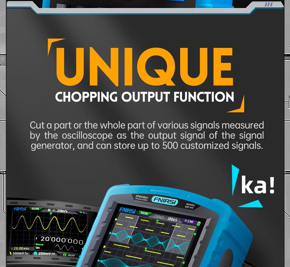 Generátor signálu DDS má 14 druhů funkčních signálových průběhů a volně přizpůsobitelný průběh sekání. Frekvence sinusového průběhu může dosáhnout až 20 MHz a ostatní průběhy až 10 MHz. Původní funkce výstupu sekání umožňuje uložit až 500 přizpůsobených signálů.