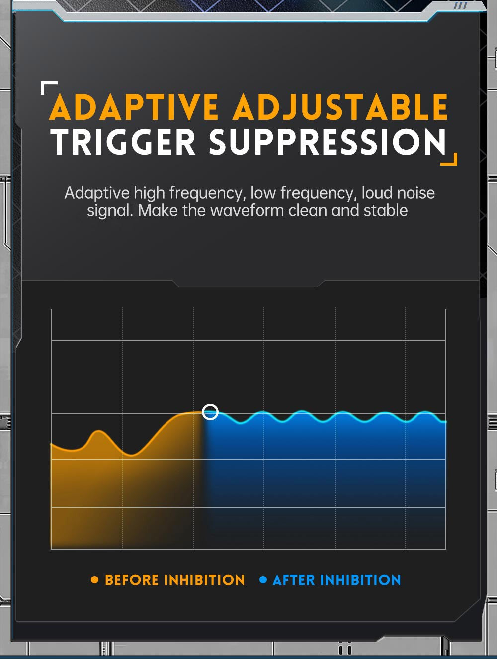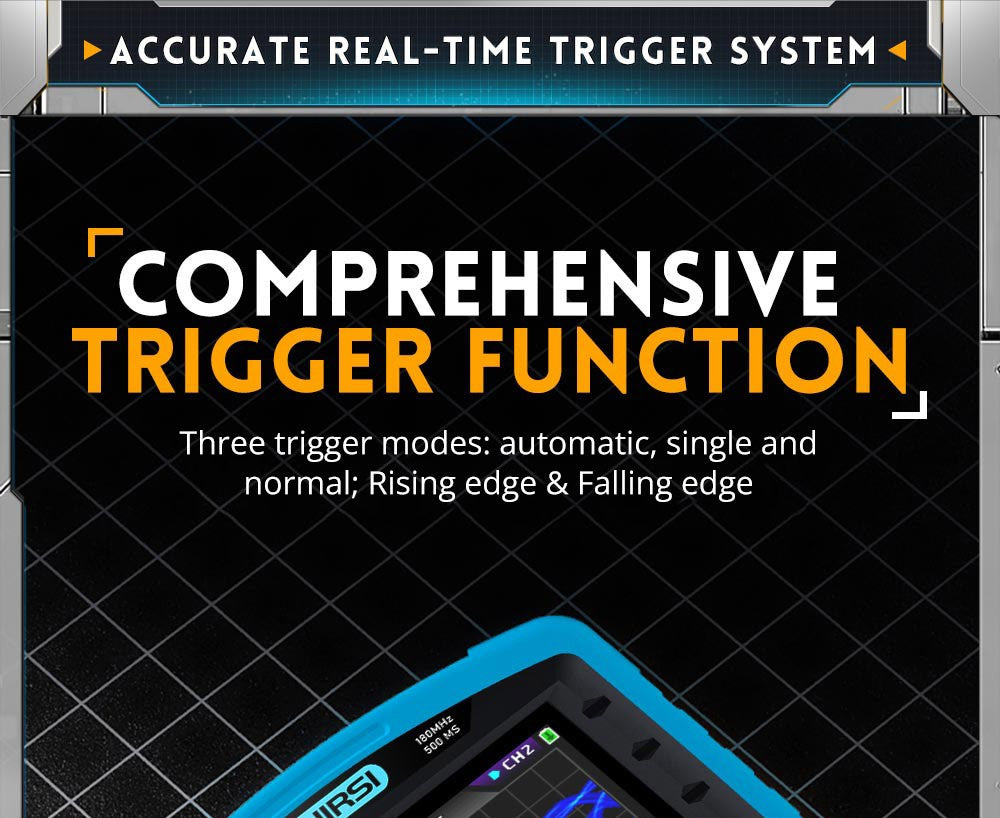 Dokáže filtrovat šum nad 20 MHz. Spouštěč využívá digitální spouštěcí technologii s vysokou přesností. Má tři spouštěcí režimy: automatický/jednoduchý/normální. Má také silnou schopnost zachytit periodické signály, burst signály a protokolové signály.
