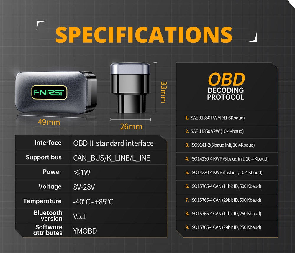 FNIRSI FD10 OBD2 vyžaduje použití aplikace třetí strany s technologií Bluetooth V5.1, která je kompatibilní se systémy IOS a Android a podporuje mnoho jazyků. Aplikaci (YMOBD) si můžete stáhnout přímo z IOS Mall nebo Google Mall a poté získat přístup k zcela novému světu informací o vašem vozidle prostřednictvím mobilního telefonu.