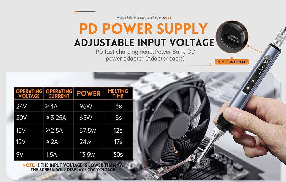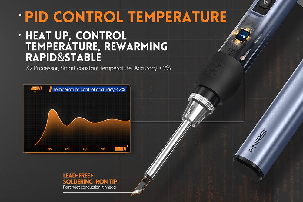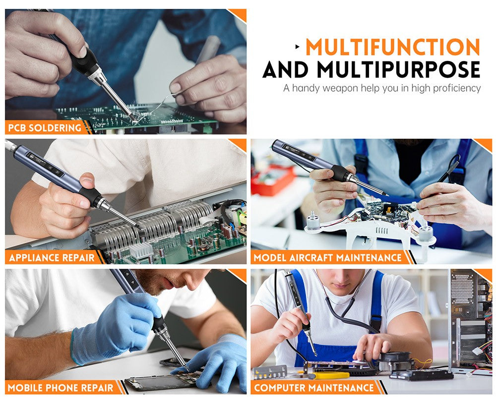 Tato přenosná páječka se zahřeje během několika sekund. Teplota se zobrazuje na OLED displeji, který lze přesně a snadno nastavit od 80 do 420 stupňů Celsia (180 až 780 stupňů Fahrenheita). Je vhodná pro opravy svařováním dronů, šperků, hodinek, mobilních telefonů a dalších přesných a cenných předmětů.