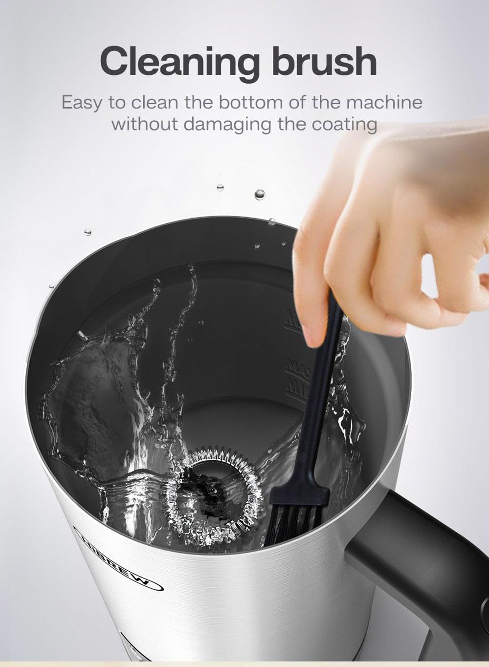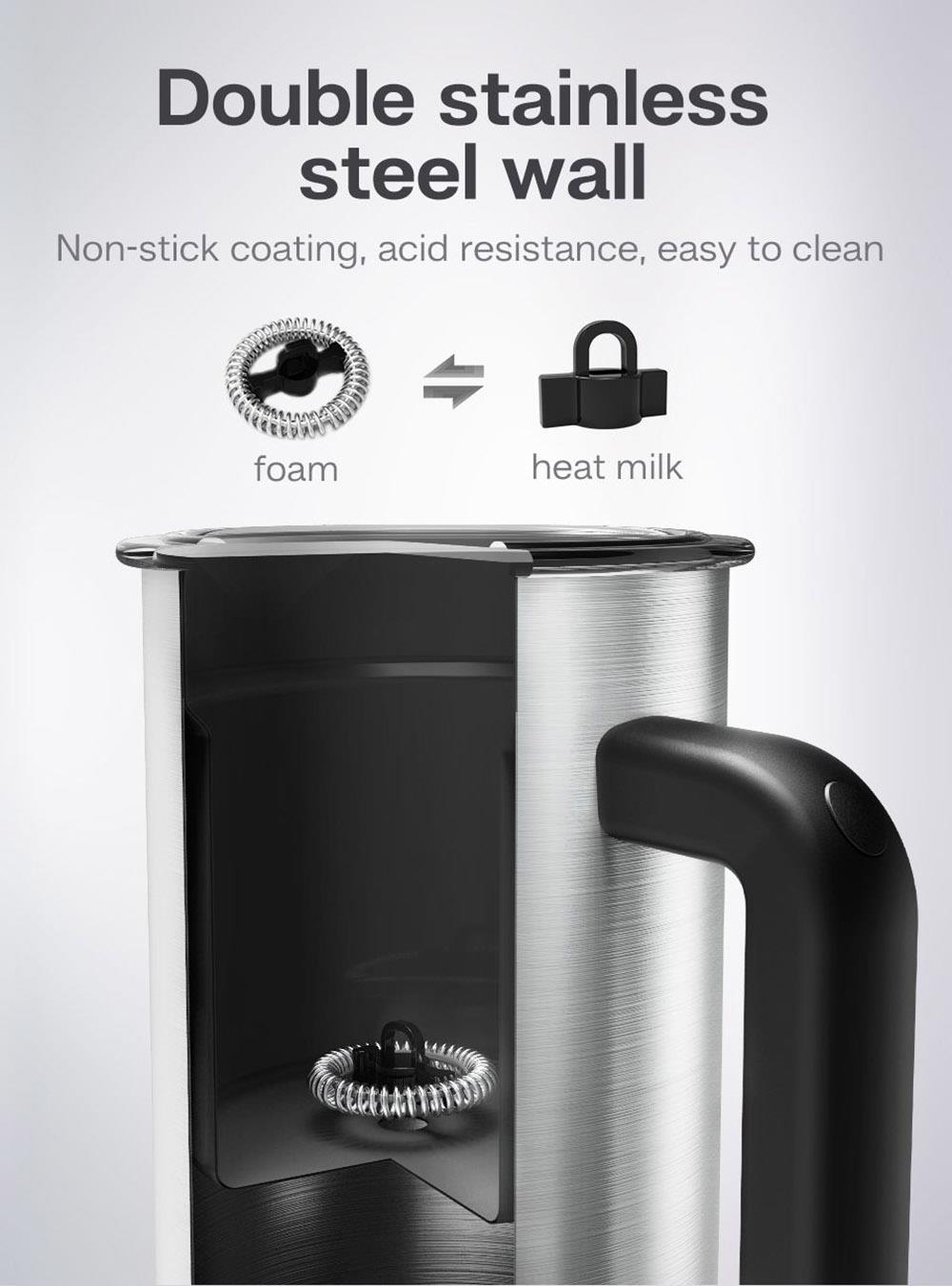 Díky spínači s jedním tlačítkem trvá příprava bohaté mléčné pěny pouhých 90 sekund. Vnitřní stěna z nerezové oceli a nepřilnavý povrch činí napěňovač mléka M3 extrémně odolným a snadno se čistí. Navíc pracuje s nízkou hlučností a prakticky bez vibrací, což z něj činí perfektní domácí napěňovač mléka.
