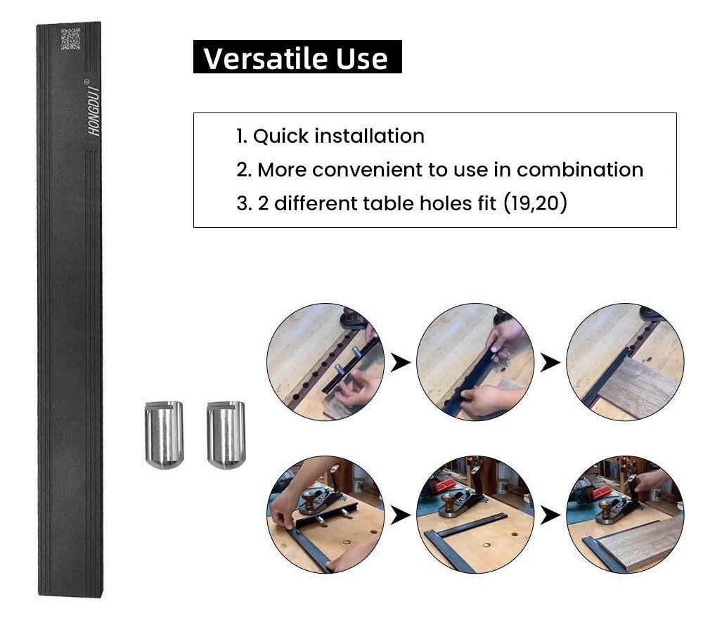1. Tento nástroj je perfektním řešením pro držení při ručním hoblování tenkých nebo širokých materiálů o tloušťce pouhých 5,5 mm, umožňuje hoblování desek o tloušťce až 6 mm a zabraňuje zkosení obrobku pod hoblíkem.
