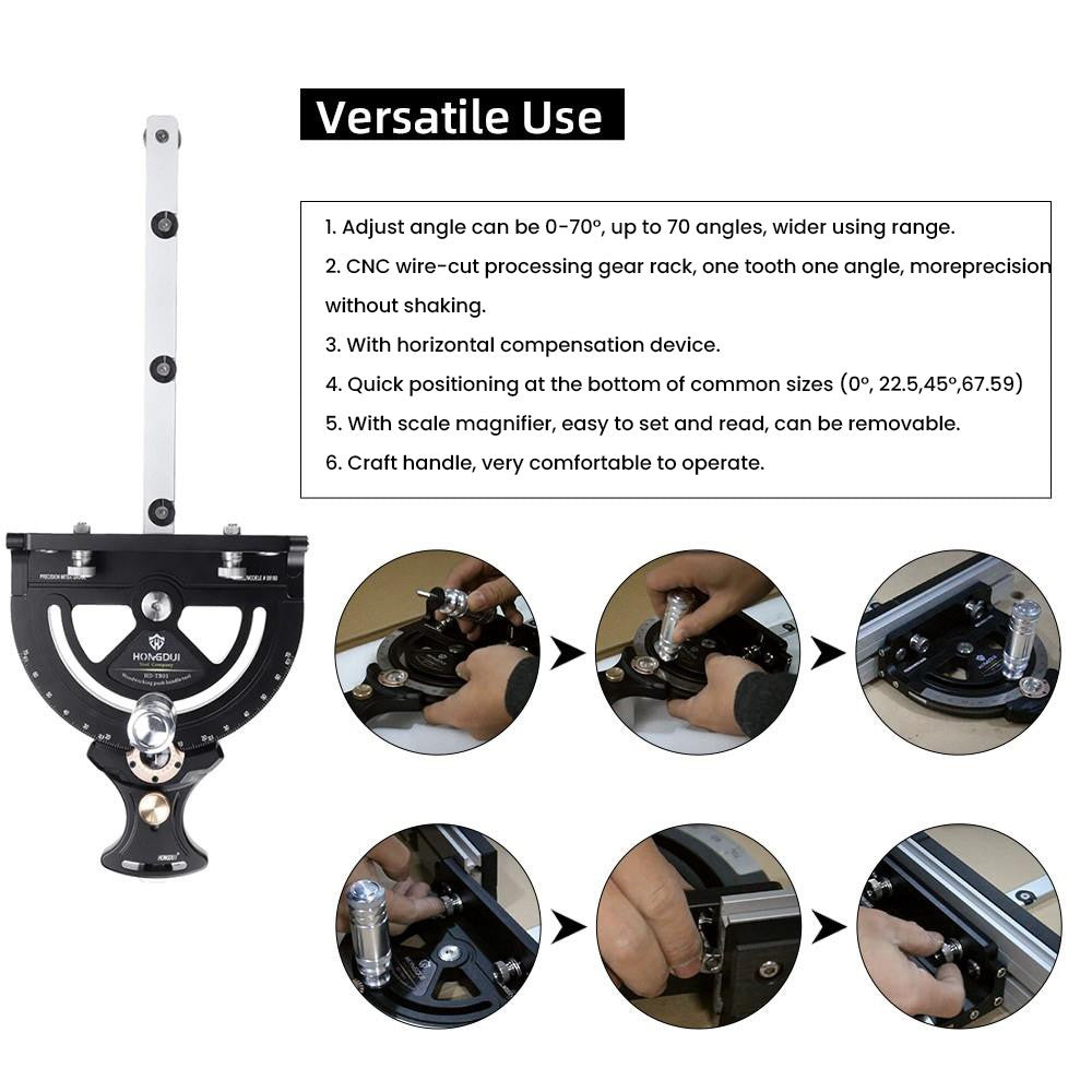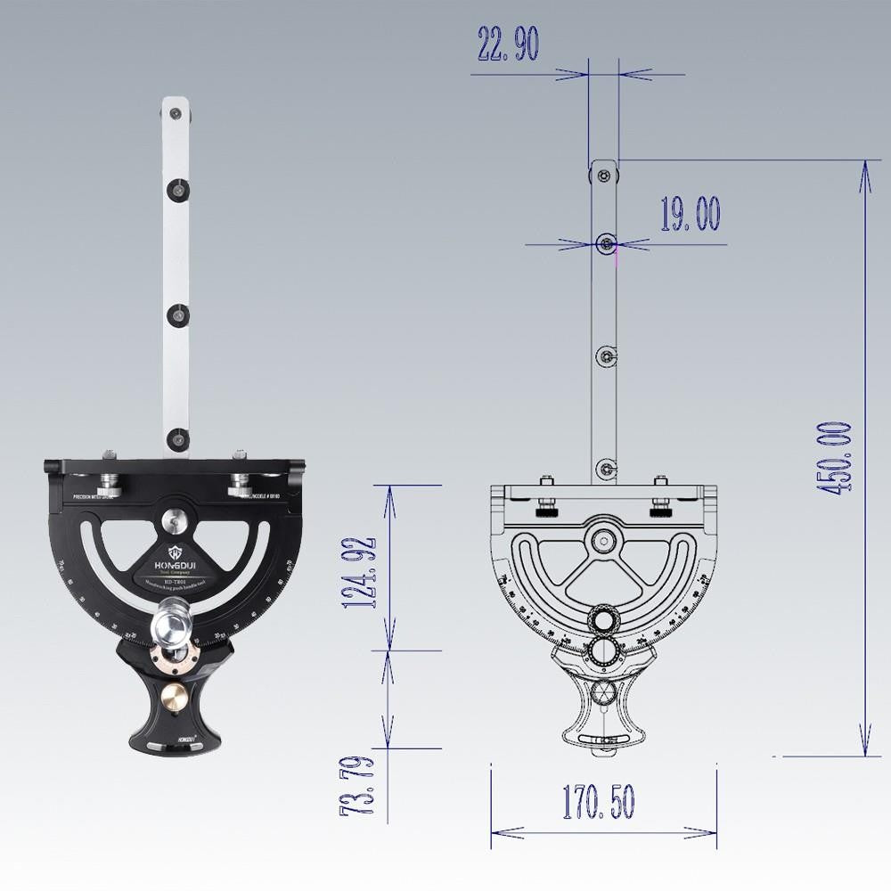 4. Má také zařízení pro horizontální kompenzaci a umožňuje rychlé polohování ve spodní části běžných velikostí, jako je 0 stupňů, 22,5 stupňů, 45 stupňů a 67,5 stupňů.