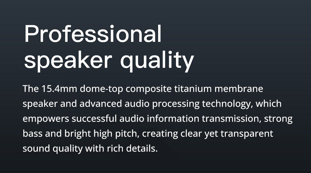 15,4mm kopulovitý kompozitní titanový membránový reproduktor a pokročilá technologie zpracování zvuku umožňují úspěšný přenos zvukových informací, silné basy a jasné vysoké tóny, a vytvářejí tak čistý, ale transparentní zvuk s bohatými detaily.