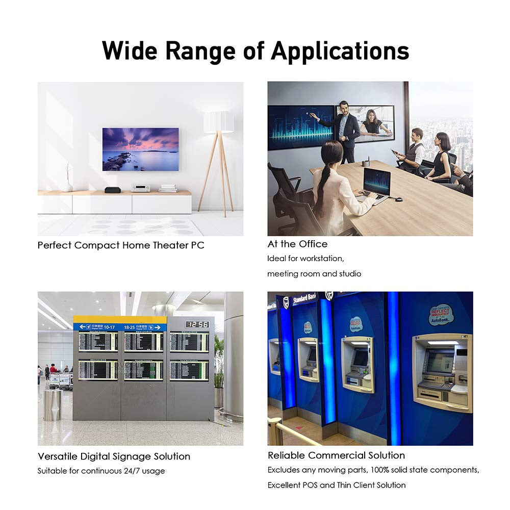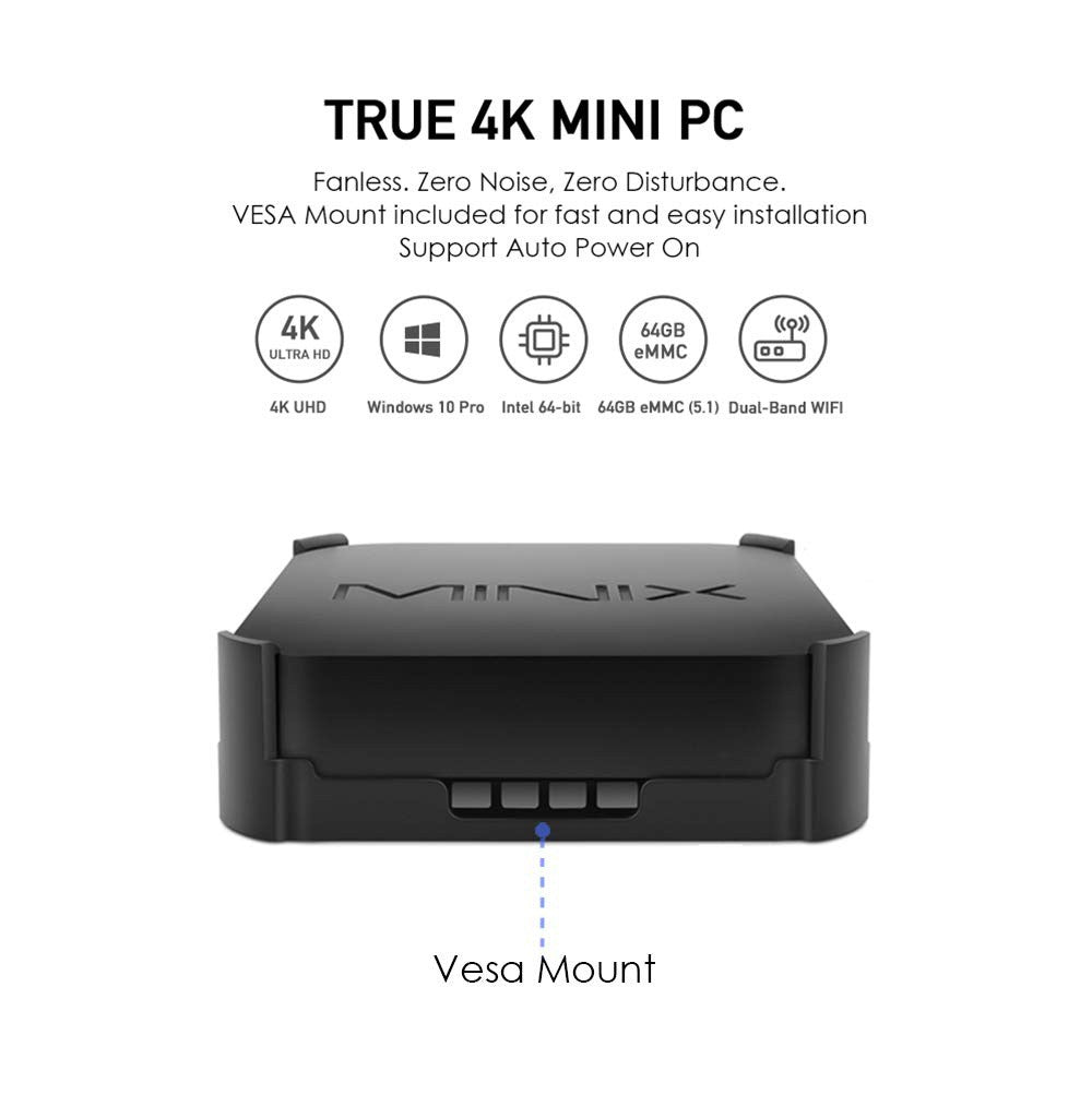 Ideální pro průmyslové aplikace, ideální řešení pro digitální signage, POS a tenké klienty. Součástí je držák VESA - Možnost automatického zapnutí lze povolit v nabídce BIOS desky NEO Z83-4 Max.