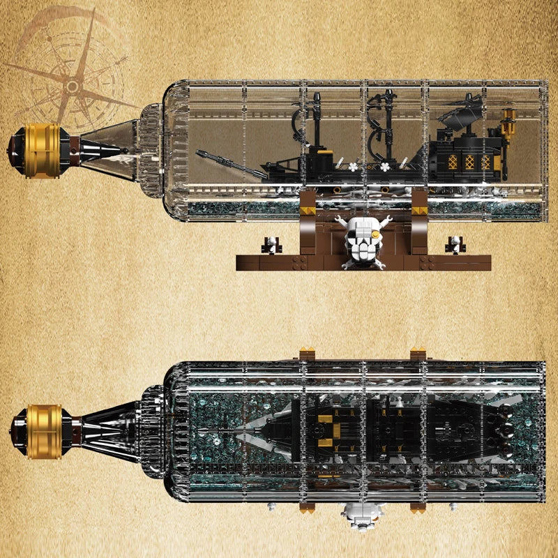 Mold King 10065 Stavební blok pirátské lodi Černá perla v láhvi Model Plachetnice Hračky Montáž Cihla Děti Vánoční dárky