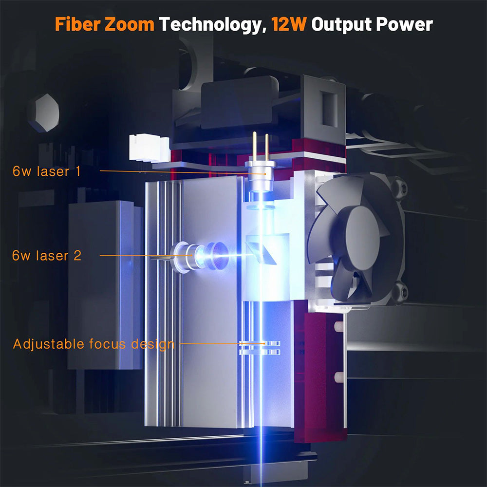Díky pulznímu výkonu 12 W+ a kontinuálnímu optickému výkonu 11 W dokáže řezat 4mm překližku na jeden průchod (rychlost 200) a 3mm černou akrylovou desku na jeden průchod. Je také schopna gravírovat nerezovou ocel, ale vyžaduje dobré nastavení ostření.
