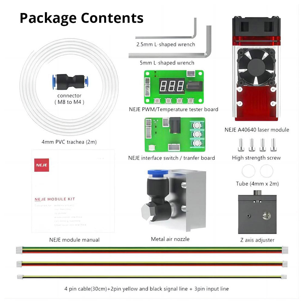 | 1 x NEJE A40640 Laser Module (Built-in High-Pressure Air Nozzle and Module Radiator) | |