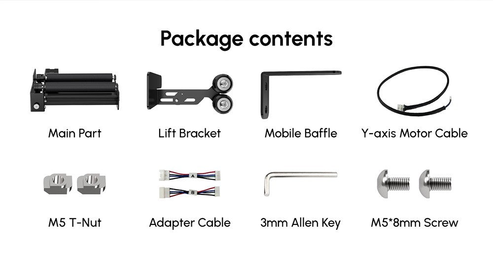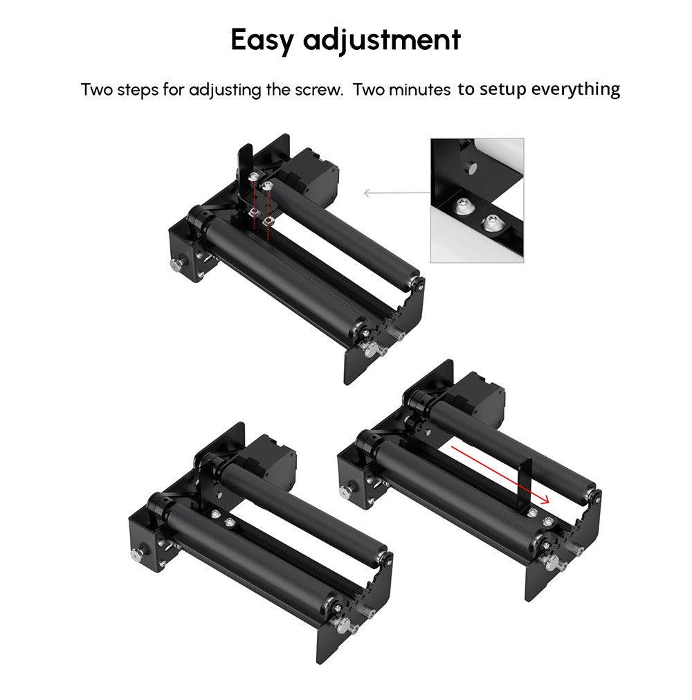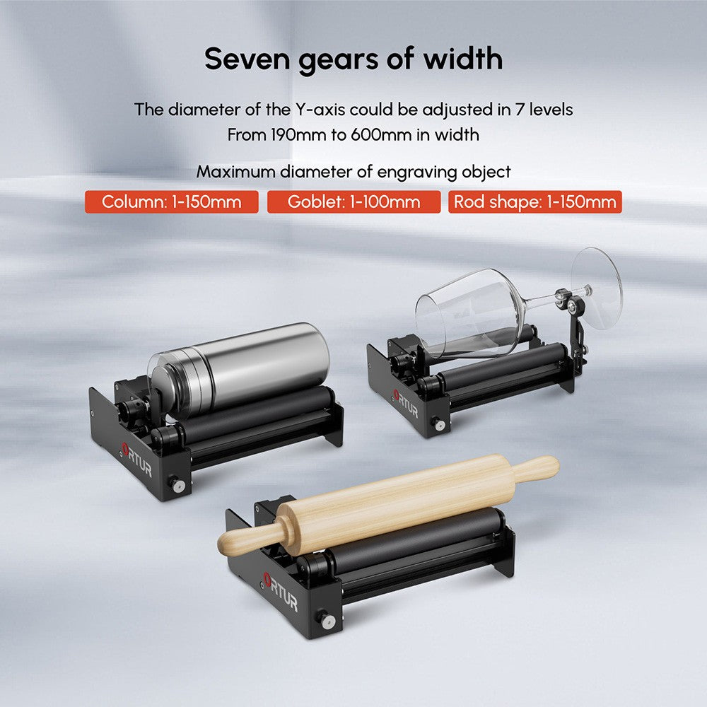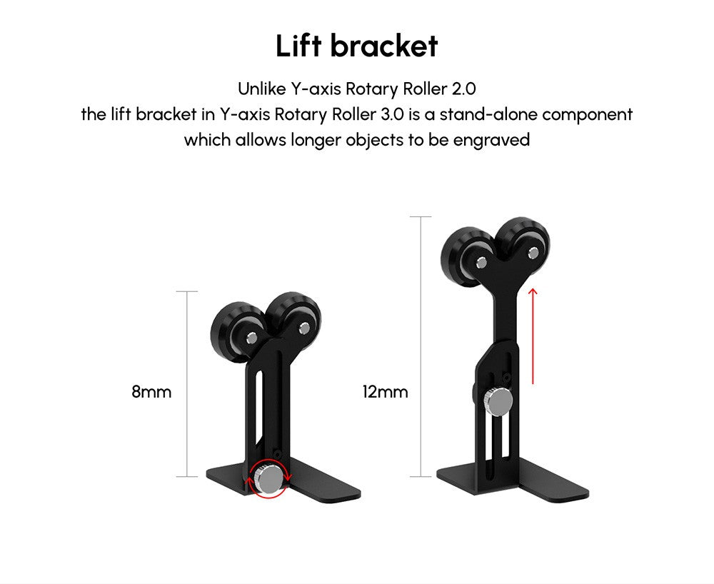 Rotační válec osy Y 3.0 umožňuje víceúrovňové nastavení a podporuje gravírování válcových předmětů různých velikostí.