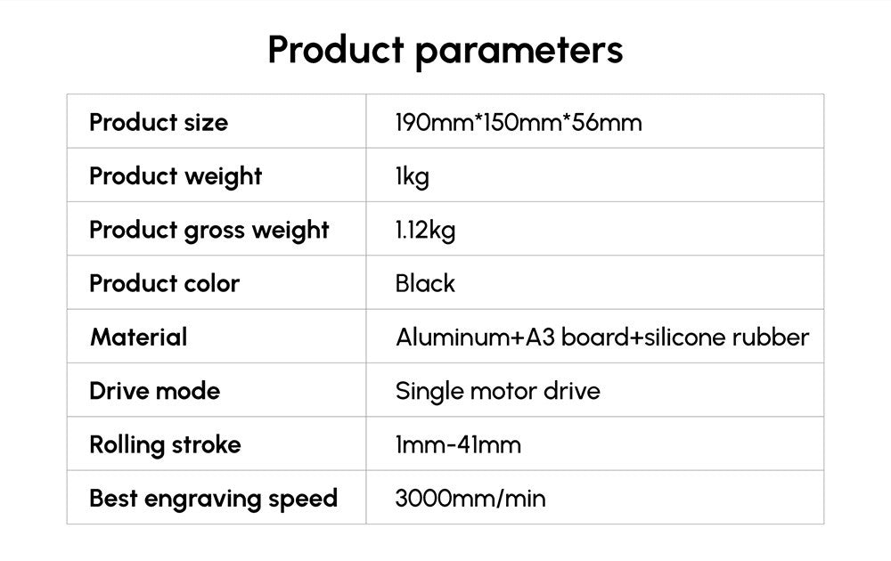 | Maximum Diameter of Engraving Objects: cylinder: 1-150mm; goblet: 1-100mm; rod: 1-150mm | |