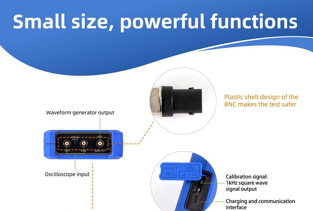 | Channels: 2-CH Oscilloscope + 1-CH Generator | |