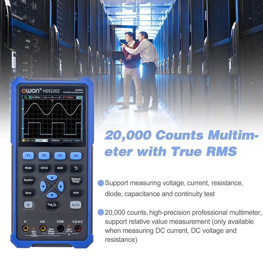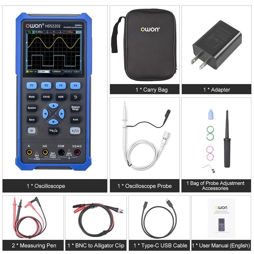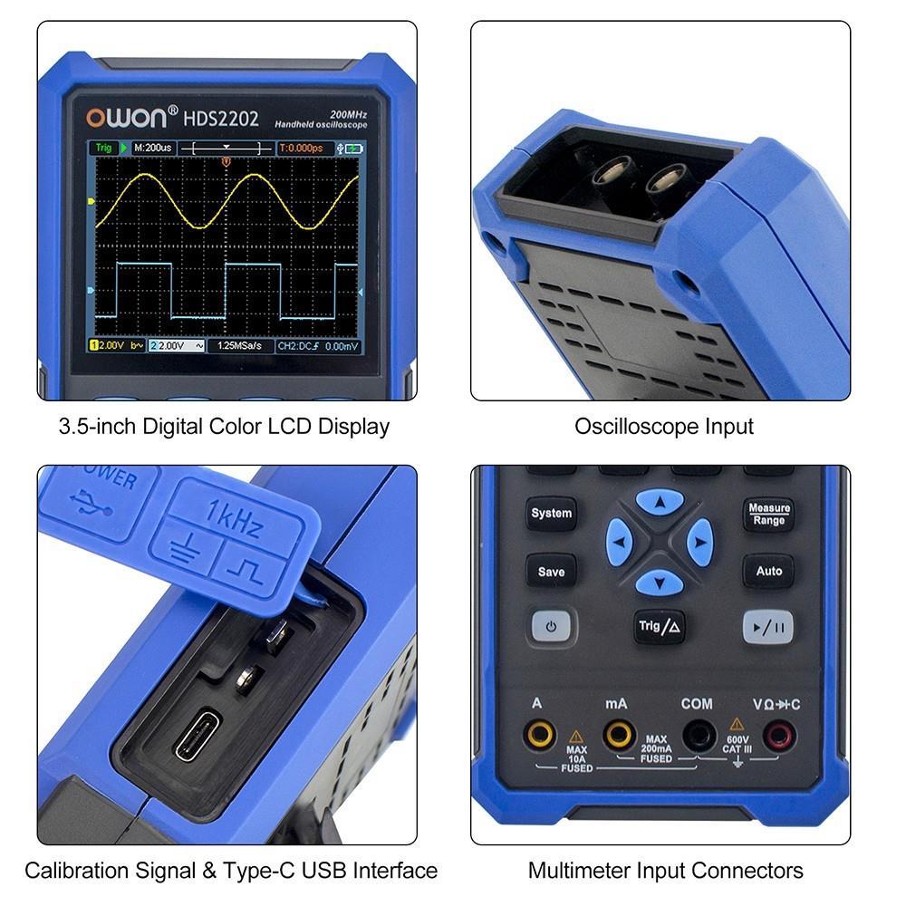 OWON HDS2202 je vybaven funkcí digitálního osciloskopu a zároveň multimetru. Je snadno ovladatelný a vhodný pro venkovní údržbu, rychlé měření na místě, údržbu automobilů, detekci napájení atd.