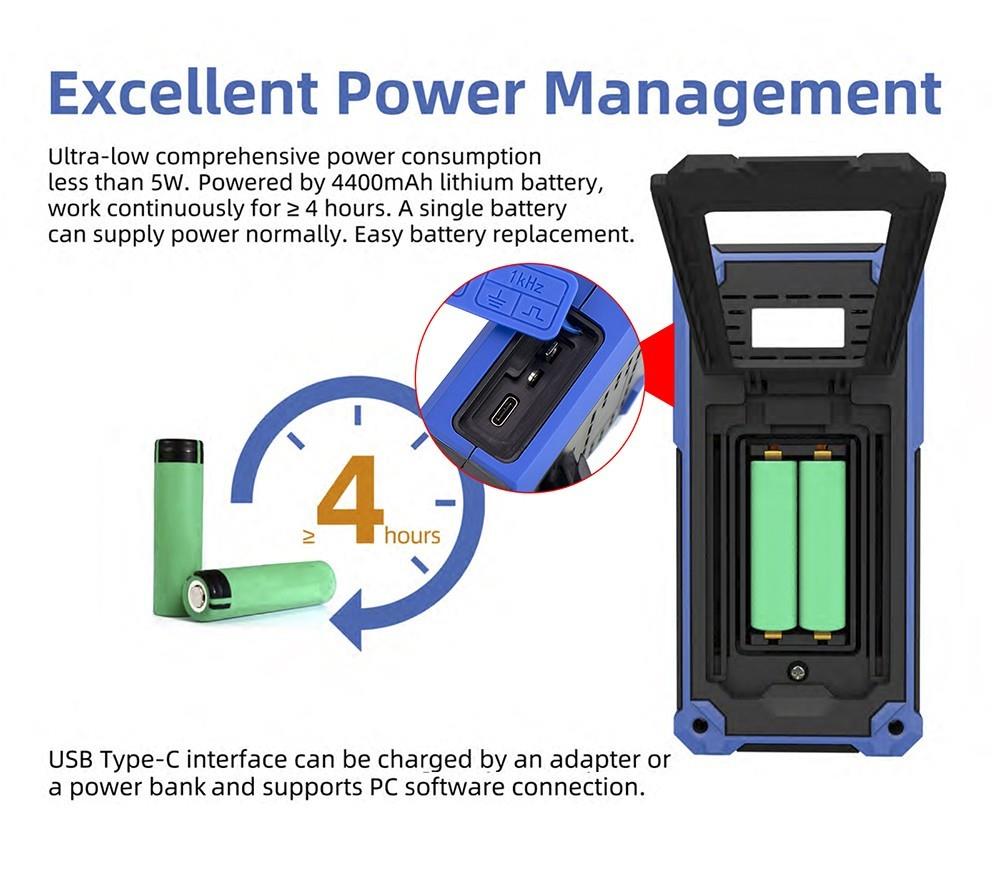 Multimetr s 20 000 měřicími jednotkami True RMS je vybaven funkcí automatického přepínání rozsahu a funkcí udržení naměřené hodnoty. Lze jej použít k měření standardního napětí, proudu, odporu, diod, kapacity a testu kontinuity. Konfiguruje maximální vstupní napětí AC 750 V a DC 1000 V. Nezávislý vstup multimetru a osciloskopu podporuje funkci relativního měření.