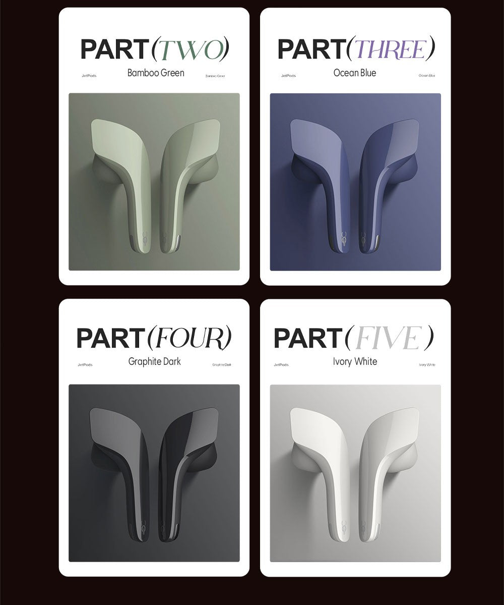 Jetpods mají polo-ušní design, který plně zohledňuje požitek z hudby na základě pohodlí a padnutí.