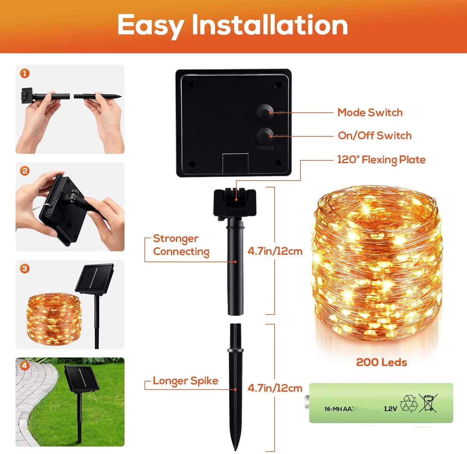 - Před prvním použitím se prosím ujistěte, že je solární světlo nabito dostatečným slunečním světlem po dobu 12 hodin.