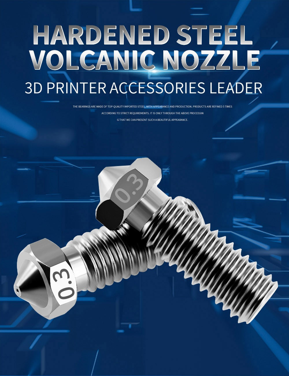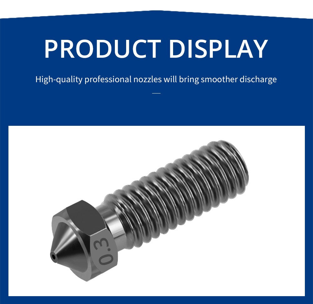 1. Tato tryska, která využívá vysoce kvalitní tepelné tvarování, vysokoteplotní cementaci a kalení, se vyznačuje vynikající odolností proti opotřebení, tepelnou odolností, vysokou tvrdostí, houževnatostí a dlouhou životností. Je kompatibilní s většinou vysokoteplotních tiskových filamentů na trhu.