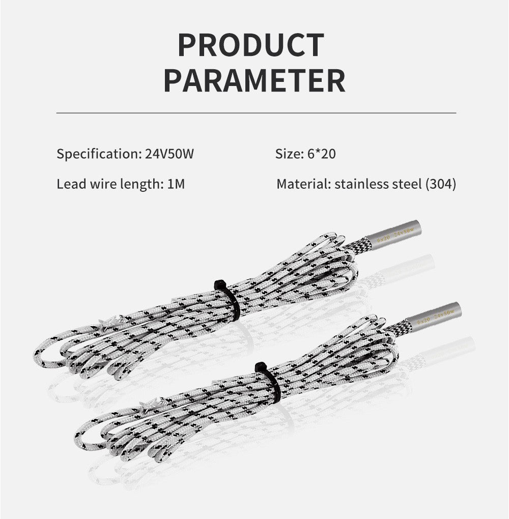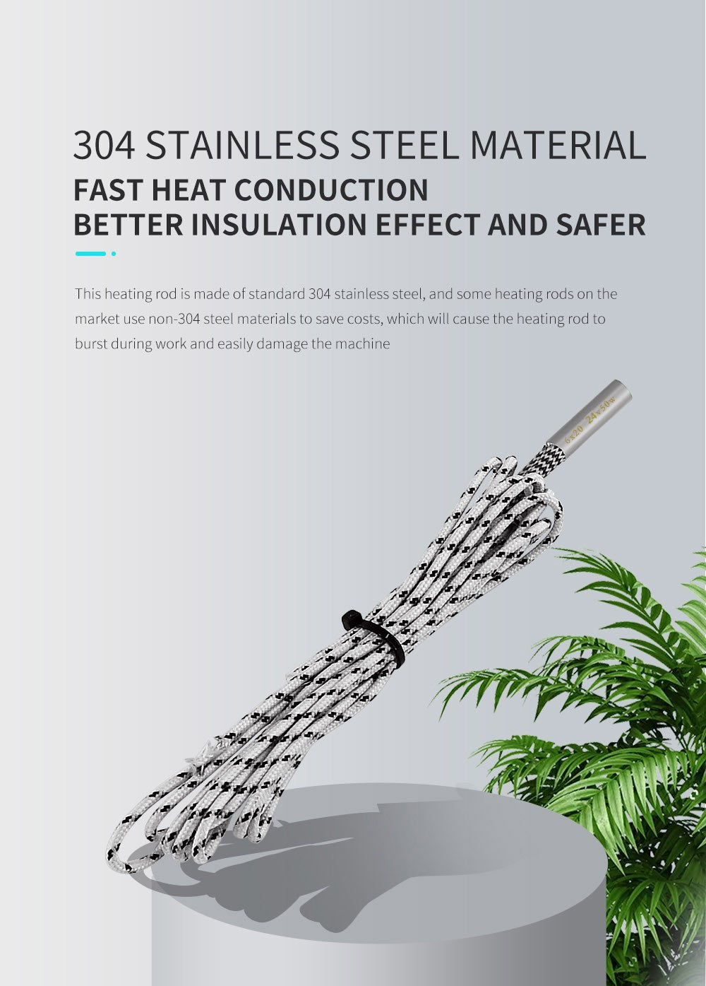 2. Tato topná tyč je vyrobena ze standardní nerezové oceli 304, která nezpůsobí prasknutí topné tyče během práce ani poškození stroje.