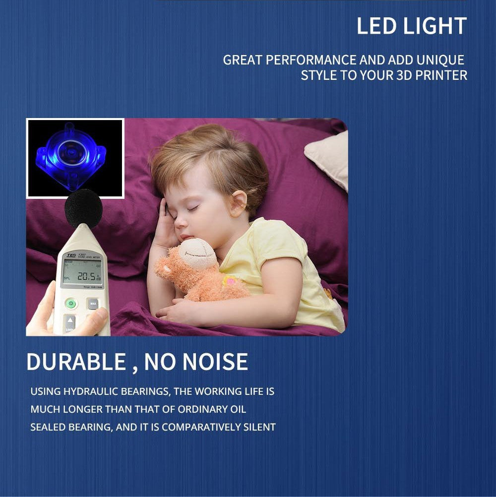 1. Chladicí ventilátor s LED světlem má skvělý výkon a dodává vašim 3D tiskárnám jedinečný styl.