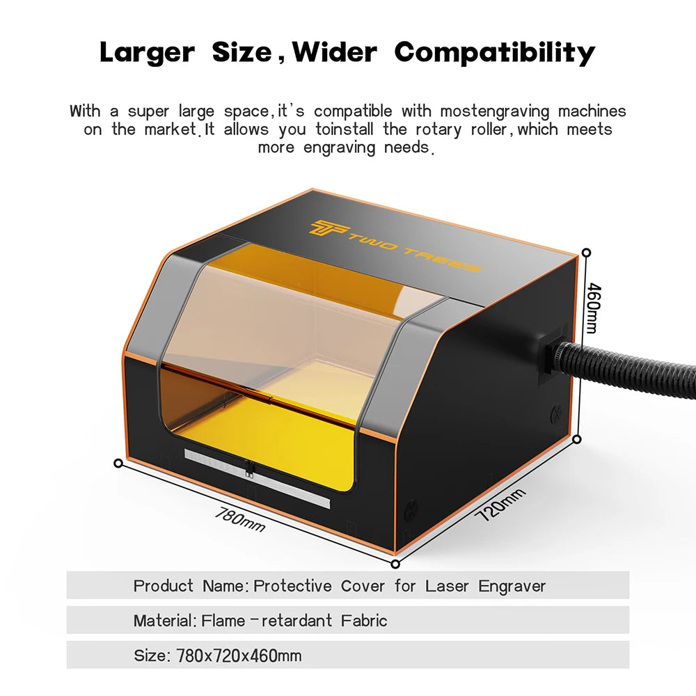 Skříň laserového rytce Twotrees Ohnivzdorný a prachotěsný ochranný kryt 780 x 720 x 460 mm s výfukovým ventilátorem a upevněním na potrubí