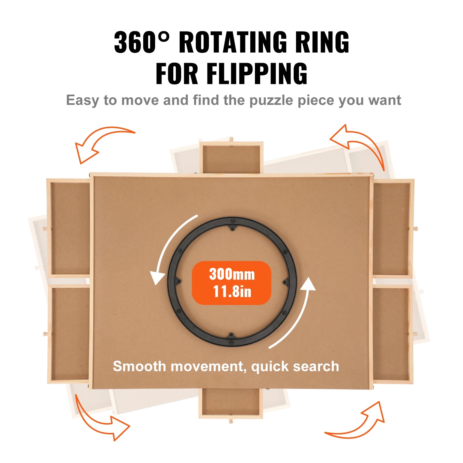 Dřevěná skládačka se může plynule otáčet o 360°, což vám umožní přesunout ji do požadované polohy během několika sekund, což usnadňuje nalezení potřebných dílků skládačky.